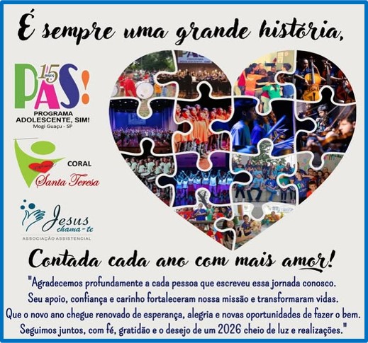 2025 foi um ano marcado por desafios, por buscas intensas e por situações que exigiram o avivamento da nossa fé e colocaram à prova nossa capacidade de seguir em frente. Ainda assim, é justamente por isso que hoje agradecemos — porque cada obstáculo nos fortaleceu e nos trouxe aprendizados valiosos para os anos que hão de vir. Seguiremos aqui, com as bênçãos de Deus, continuando a escrever a nossa história e a de tantas crianças e jovens que caminham e constroem esse propósito conosco. Que neste Natal, a presença do aniversariante irradie luz, esperança e amor em cada lar, e que o novo ano chegue repleto de novas bênçãos, oportunidades, saúde e paz para todos.