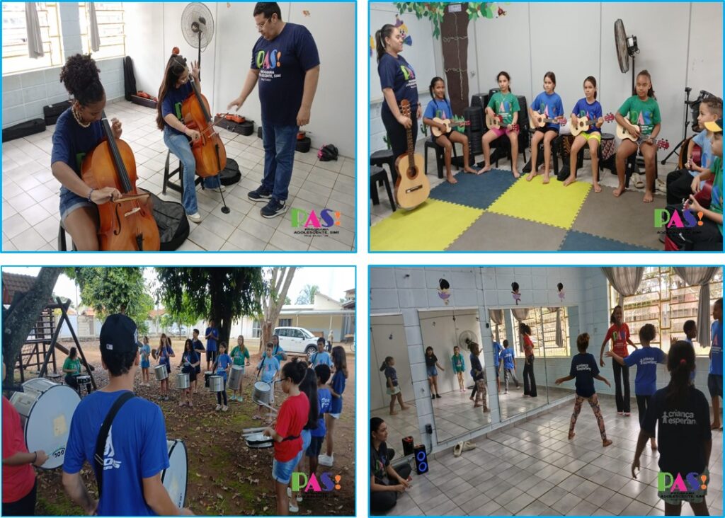 Acreditando que a música deve fazer parte da vida das crianças desde os primeiros anos, o PAS! desenvolve suas oficinas musicais com dedicação, sensibilidade e muito entusiasmo, colhendo frutos verdadeiramente inspiradores por meio de pequenos grandes artistas que crescem em talento, disciplina e autoestima. Da mesma forma, a oficina de expressão corporal fortalece a criatividade, promove o bem-estar físico e emocional e estimula a convivência em grupo, ampliando as formas de expressão e conexão entre as crianças. Esse trabalho só é possível graças ao comprometimento dos nossos educadores: Michele Galdino, nas aulas de banda, violão, escaleta, percussão e xilofone; Ana Aryel, com musicalização, coral, flauta e ukulele; Peterson Faria, à frente da orquestra de cordas, violino, violoncelo e baixo; e Isabela Guedes, conduzindo a dança e a expressão corporal. Educar com arte é transformar vidas.
